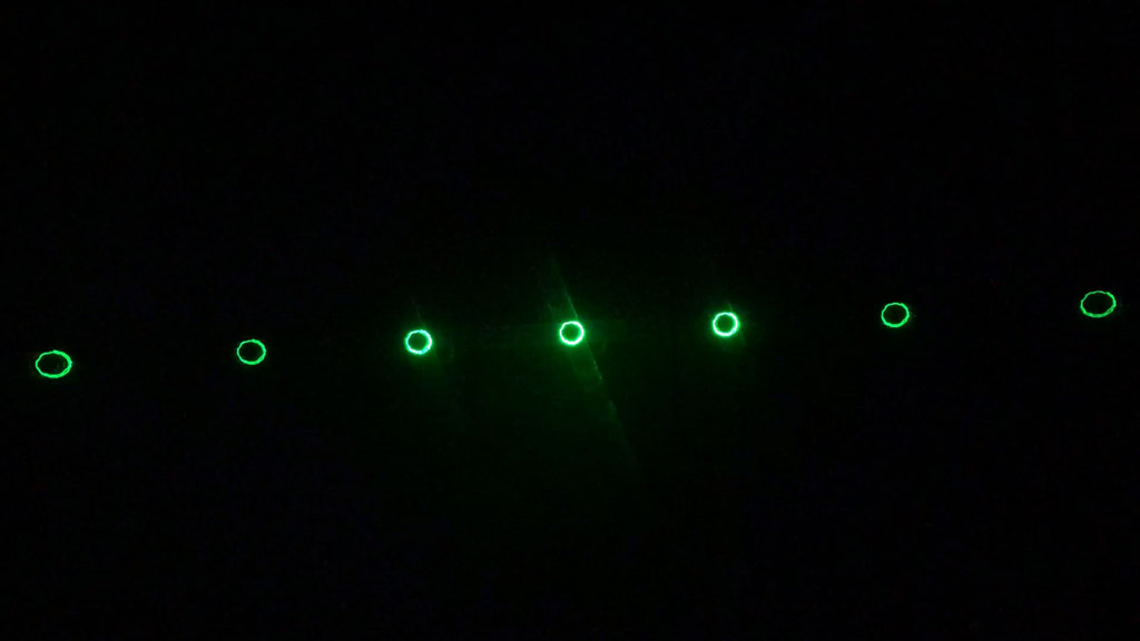 Through DMX, in the stand-alone mode as well as in the sound-to-light mode about ca. 130 (layers, tunnels, fences, waves, etc.) can be projected in different colors and in various speed. If the stand-alone mode is active, the pre-programmed patterns run without assistance and in the sound-to-light mode, the laser system projects according to the sound.
